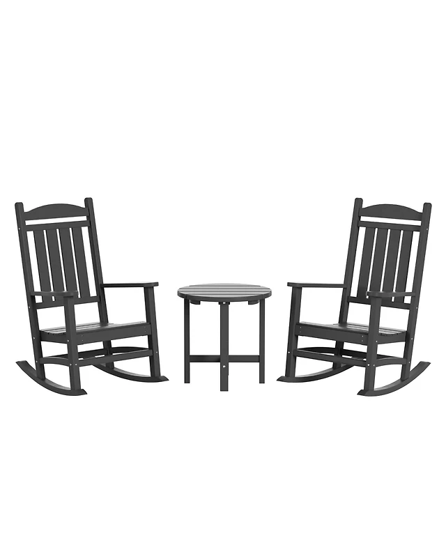 High-Back Acacia Wood Outdoor Rocking Chair with Solid Rocking Base-Black