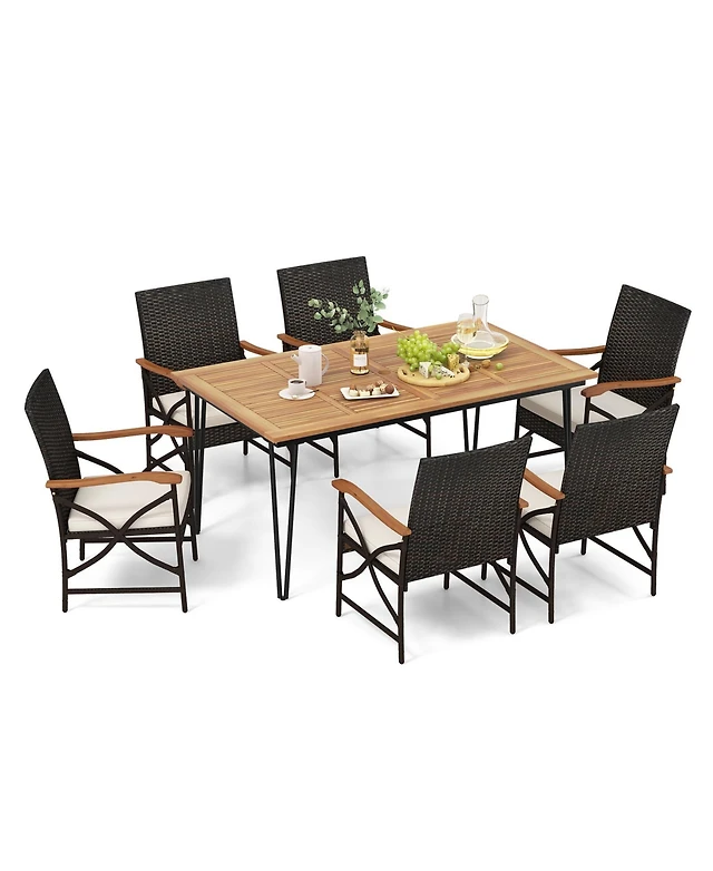 Sugift Set of 4 Outdoor Rattan Chair with Sturdy Acacia Wood Frame-Set of 4