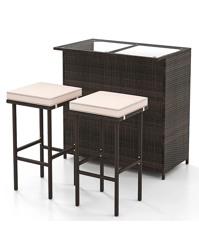 Aoodor 3-Piece Patio Furniture Set, Outdoor Rattan Wicker Chairs with Table, Sofa Set Including Cushions