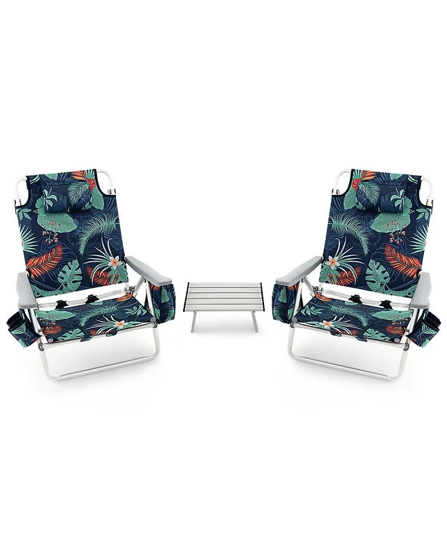 Gymax 2-Pack Folding Backpack Beach Chair Table Set 5-Position Outdoor Reclining Chair