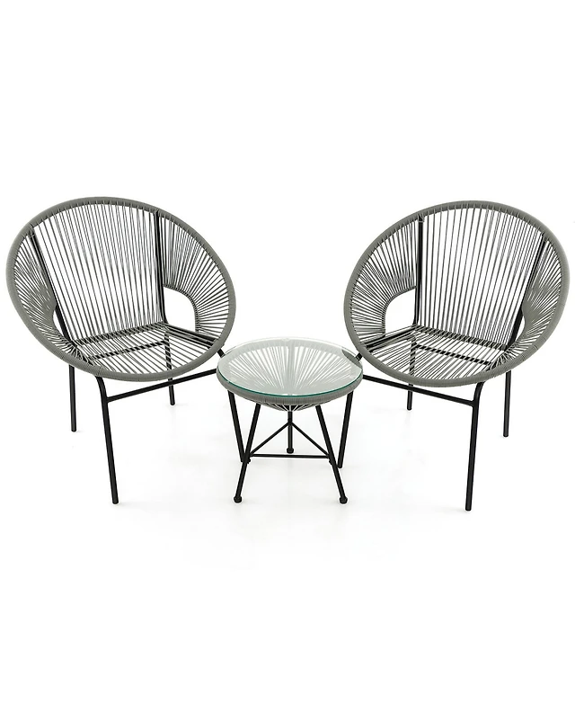 Gouun 3 Pieces Patio Furniture Set with Tempered Glass Table-Off
