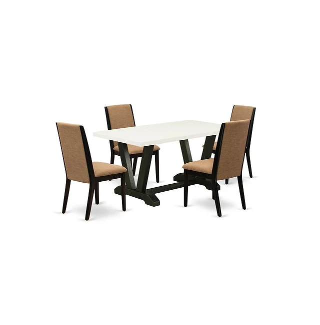 East West Furniture 5-Piece Awesome Dining Table Set an Excellent Distressed Jacobean Dining Table Top and 4 Beautiful Linen Fabric Kitchen Chairs wit