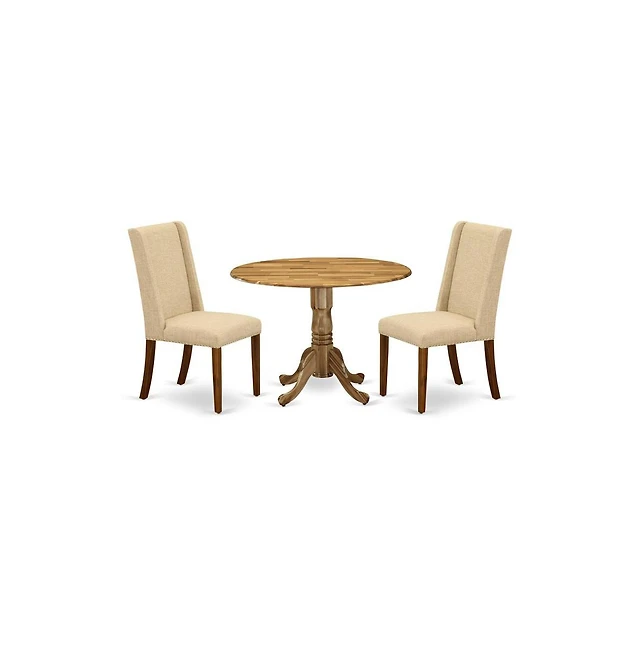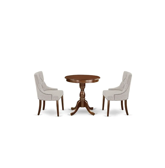 East West Furniture 3 Piece Dining Table Set - Linen White Small Kitchen Table and 2 Grey Linen Fabric Chairs for Dining Room with High Back