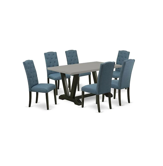 East West Furniture 5-Piece Awesome Dining Room Table Set a Good Cement Color Wood Dining Table Top and 4 Awesome Linen Fabric Parson Chairs with Styl