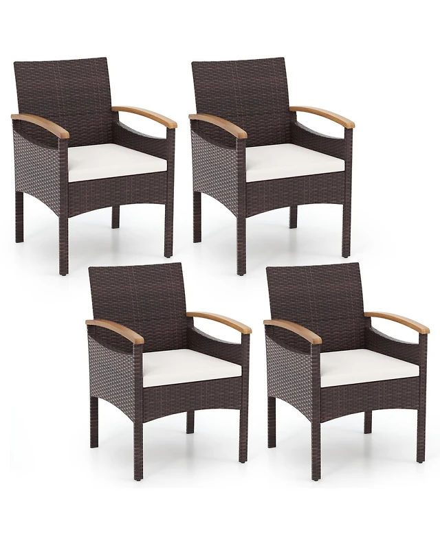 Gouun Patio Dining Chairs Set of 4 with Acacia Wood Armrest and Heavy Duty Metal Frame-4 Pieces