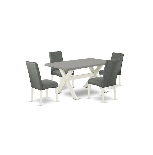 East West Furniture 5-Pc Dinette Set - 4 Parson Dining Chairs and 1 Modern Rectangular Cement Breakfast Table Top with Button Tufted Chair Back
