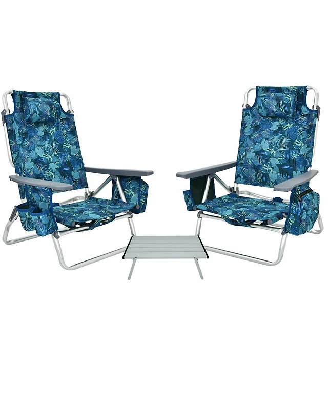 Set of 2 Wicker Dorm Chair with Storage Pocket for Camping and Fishing