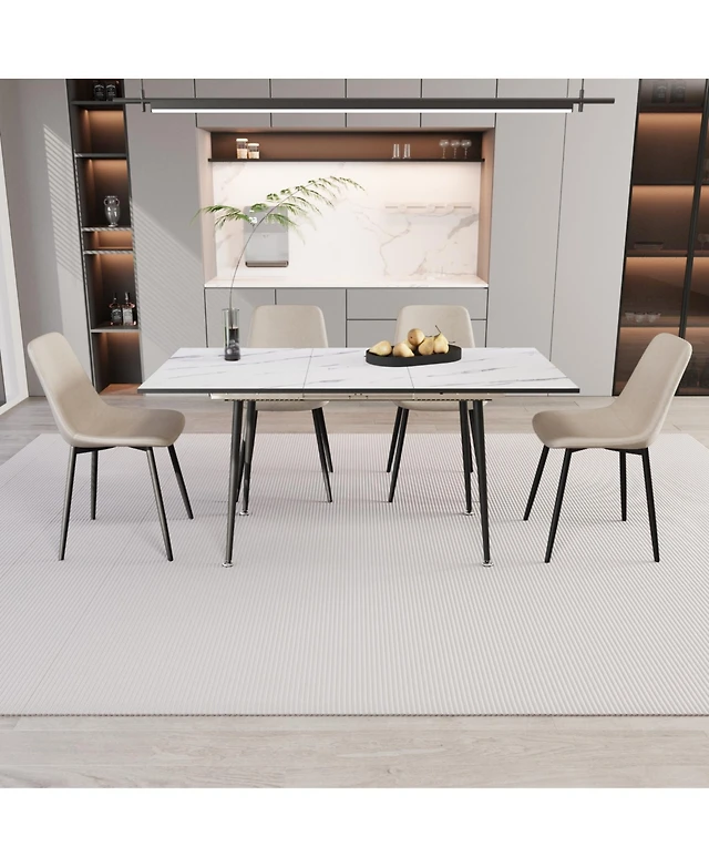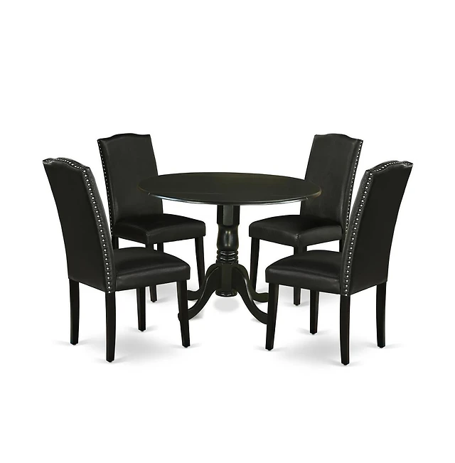 5-Piece 39.4" Round Black Dining Table Set with Starburst Base and 4 Faux Rattan Back Chairs in Mid-Century Modern Style-Maison Boucle