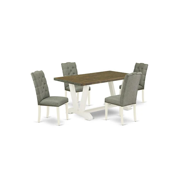 East West Furniture 5-Pc Dining Table Set- 4 Parson Dining Chairs with Black Linen Fabric Seat and Stylish Chair Back