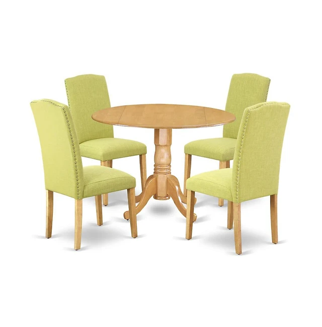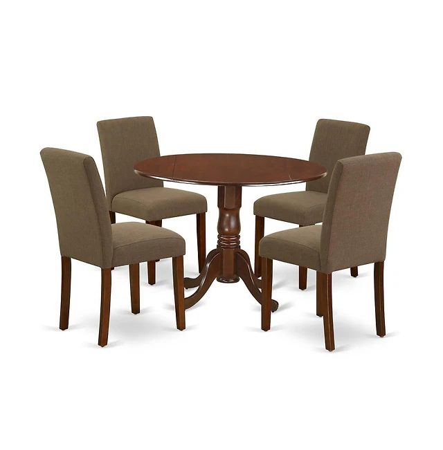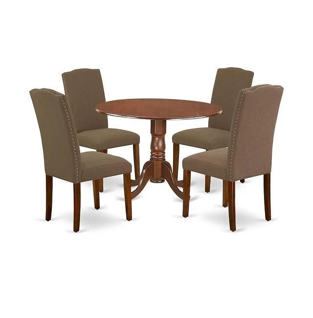 East West Furniture 5 Piece Dining Table Set Consists of 1 Drop Leaves Dining Table and 4 Shitake Linen Fabric Dining Room Chairs with High Back