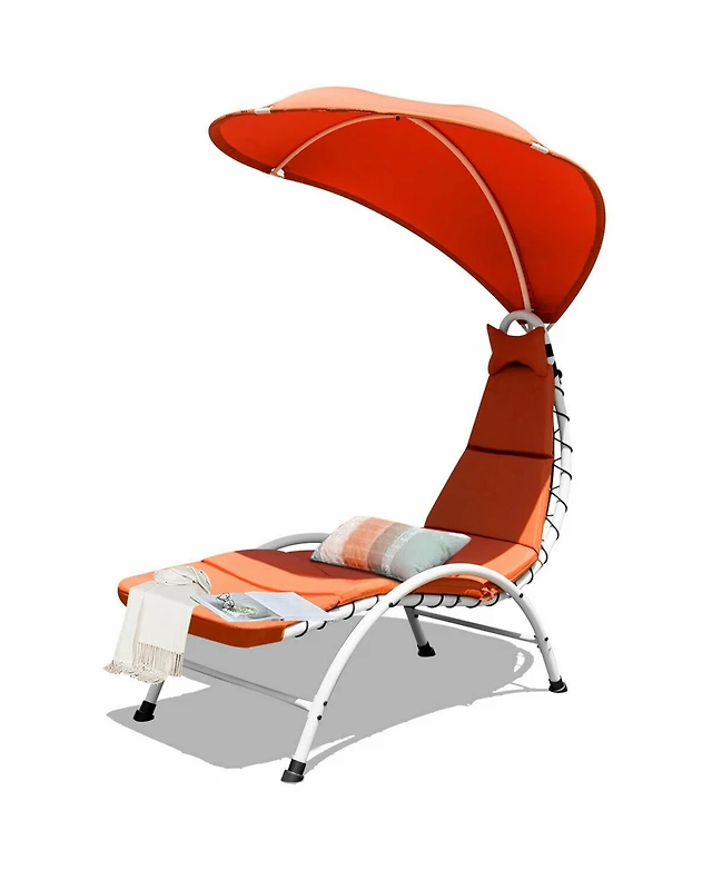 Gymax Outdoor Patio Lounge Chair Chaise w/ Steel Frame Cushion Canopy