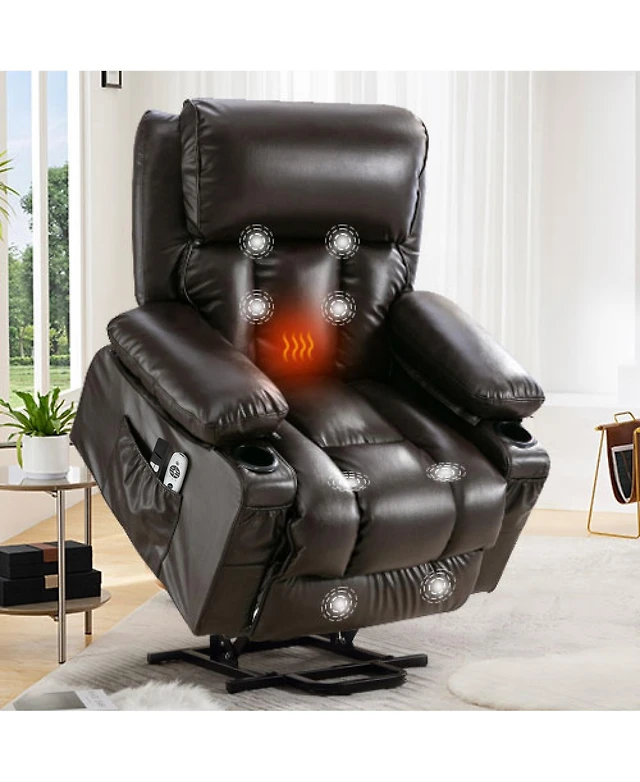 Maison Boucle Dark Brown Faux Leather Power Lift Chair with Heat, Massage & Dual Motor, Heavy Duty Recliner for Elderly Remote-Maison
