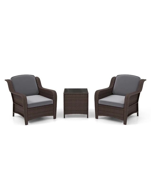 Outsunny 3 Piece Patio Furniture, Pe Wicker Storage Table & Chairs,