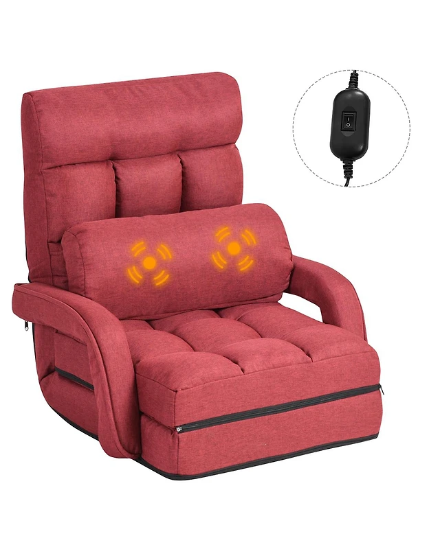 Homcom Folding Floor Chair with 6-Position Adjustable Back Pillow, Gray