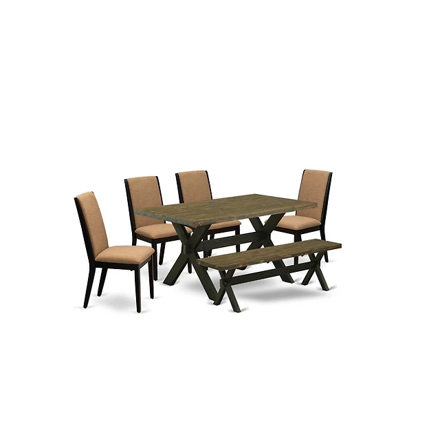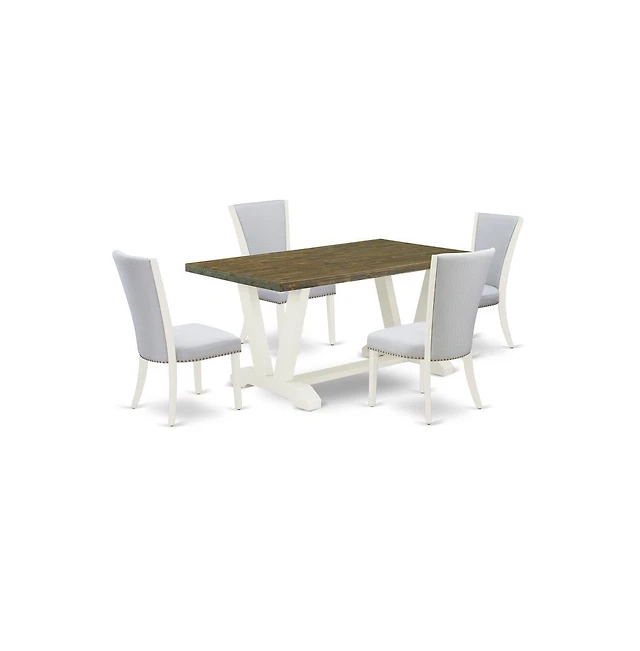 East West Furniture 5-Pc Kitchen Table Set Includes 4 Mid Century Modern Chairs with Upholstered Seat and High Back and a Rectangular Breakfast Table