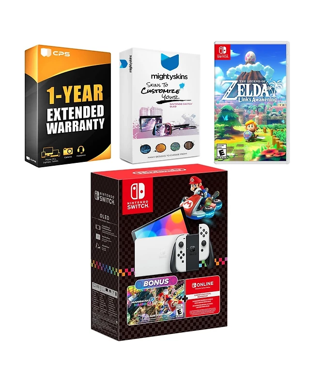 Nintendo Switch Oled Console Mario Kart 8 Deluxe Bundle with The Legend of Zelda: Link's Awakening, MightySkins Console and Controller Skin Voucher