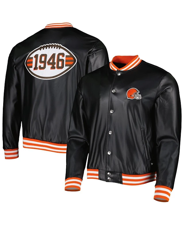 Men's The Wild Collective Black Cleveland Browns Metallic Bomber Full-Snap Jacket