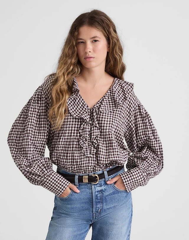 Stacked-Button V-Neck Shirt Poplin
