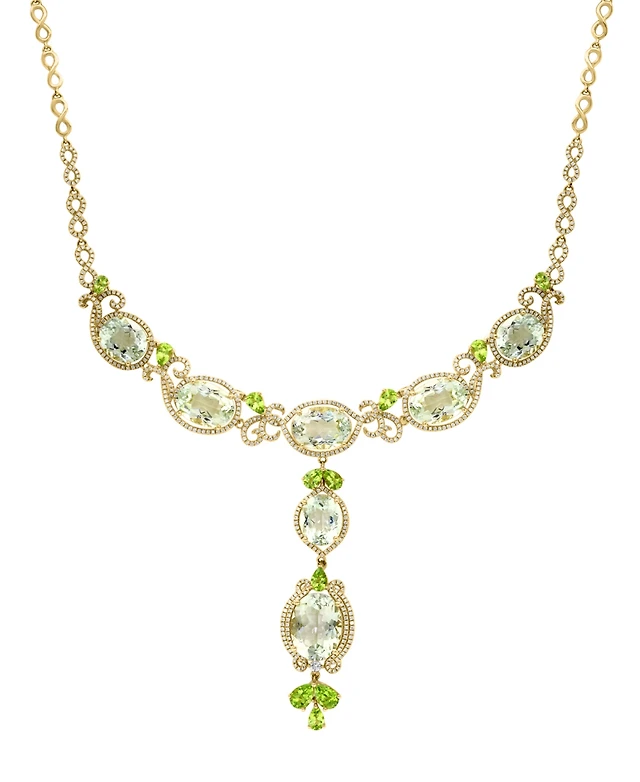 Lali Jewels Green Amethyst (1/7 ct. t.w.), Peridot (1/5 ct. t.w.) & Diamond (1/5 ct. t.w.) Necklace in 14k Yellow Gold