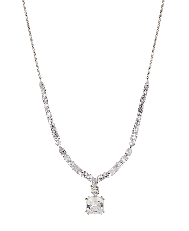 Sterling Silver Cubic Zirconia Square Cushion Drop Earrings