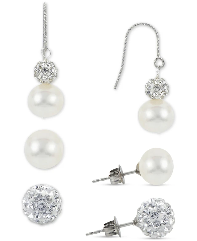 Bling Jewelry Statement Pave Cz Cubic Zirconia Leaf White Simulated Pearl Drop Earrings Silver Plated