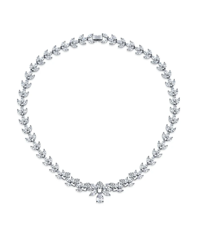 Genevive Sterling Silver with White Gold Plated Clear Pear with Marquise Cubic Zirconia Cluster Accent Drop Necklace