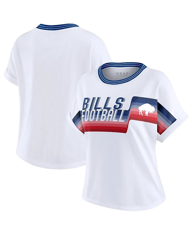 Wear by Erin Andrews Women's White Buffalo Bills Sleeve Stripe Distressed Raglan T-Shirt