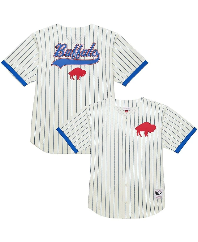 Mitchell & Ness Men's Cream Buffalo Bills Vintage Logo Final Seconds Full-Button Mesh T-Shirt