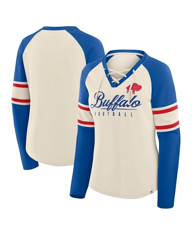 Women's Fanatics Royal Distressed Buffalo Bills Heritage Snow Wash French Terry Lace-Up Pullover Hoodie