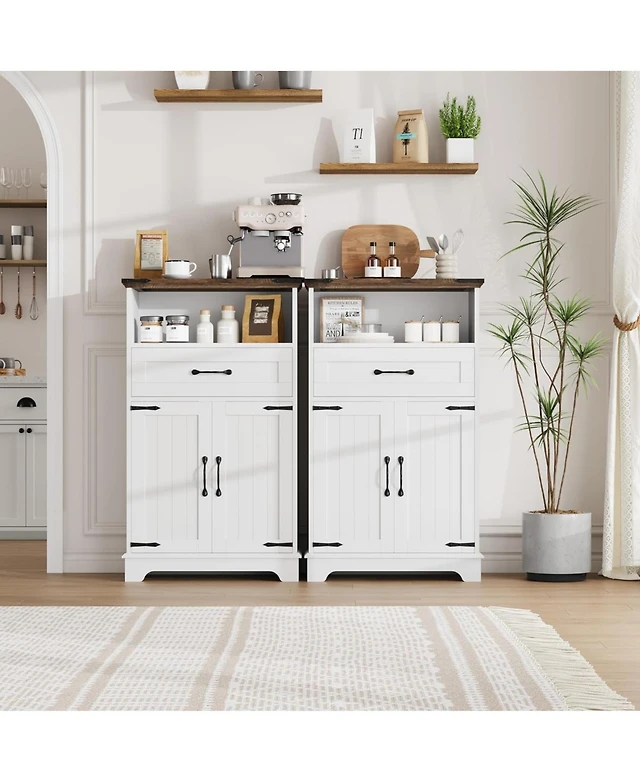 Casainc Wooden Kitchen Pantry Storage Cabinet with Drawer and Microwave Shelf