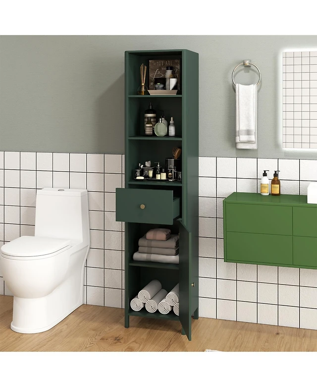 Costway -Tier Narrow Bathroom Storage Cabinet with Drawers Tissue Box Wheels for Kitchen