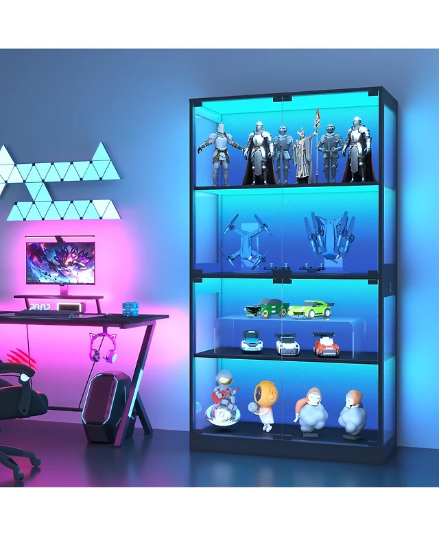 Streamdale Storage Cabinets with aluminum strip lamp,with Glass Shelves, for Living Room/Bedroom/Office