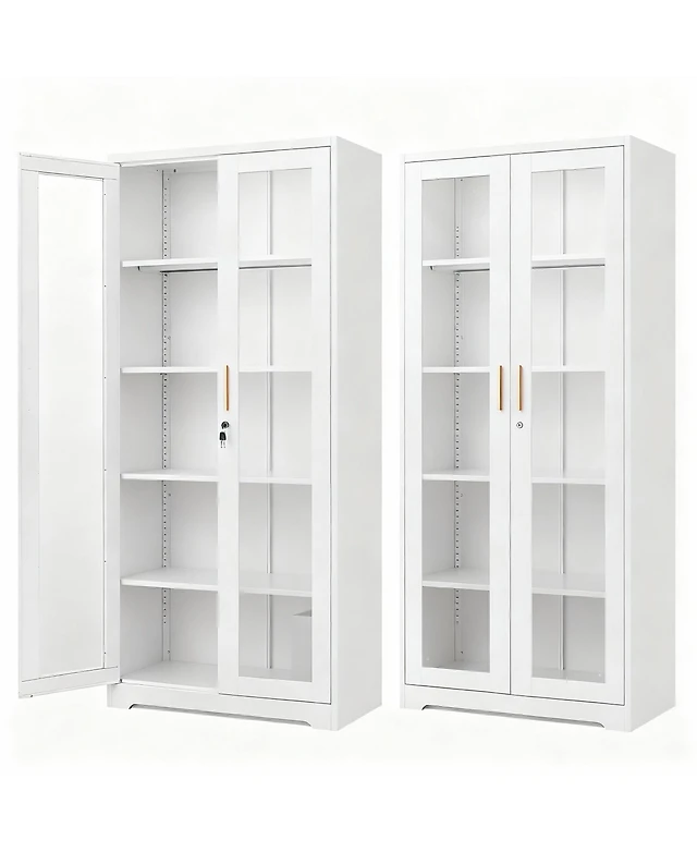 Yigii Kitchen Cabinet with Glass Doors and Drawers