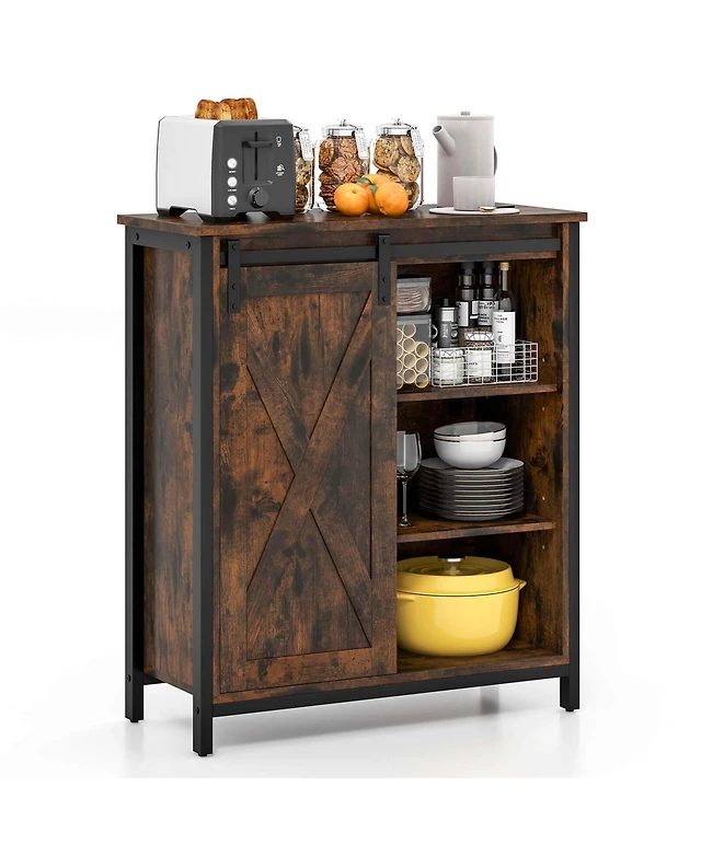 gaomon Wine Bar Cabinet,47" Farmhouse Coffee Bar Cabinet with Sliding Barn Door, Buffet Sideboard Cabinet with 16 Bottle Wine Rack for Dining, Living