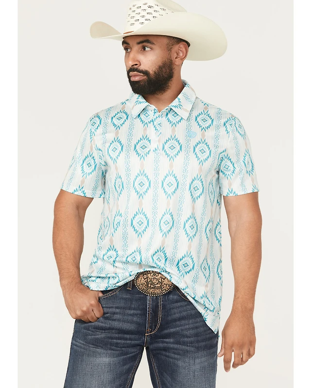 Rock & Roll Denim Men's Southwestern Print Short Sleeve Button-Down Stretch Polo Shirt