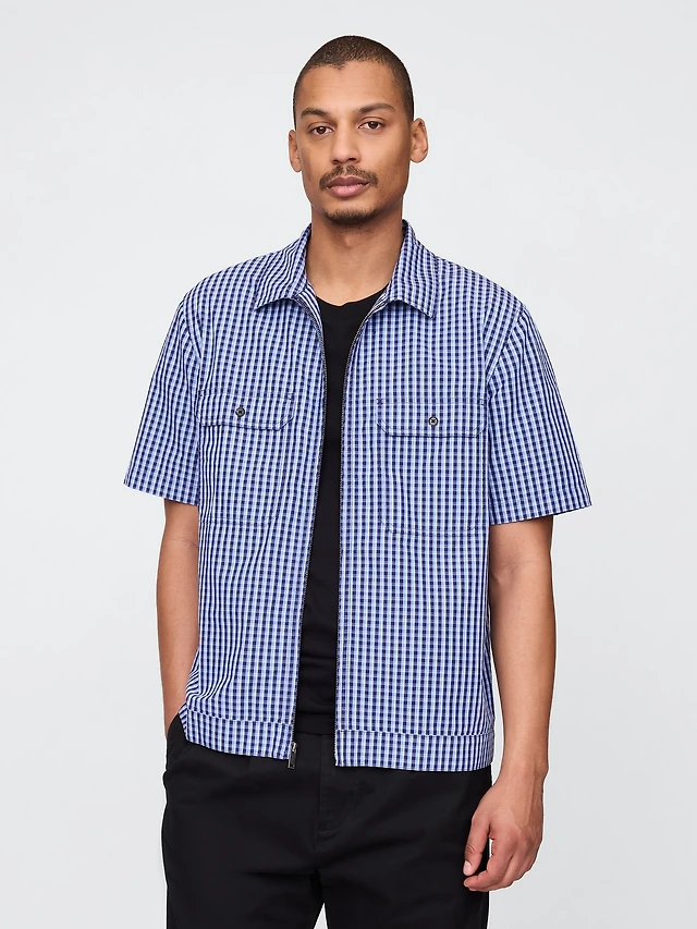 Regular-fit shirt with stand collar