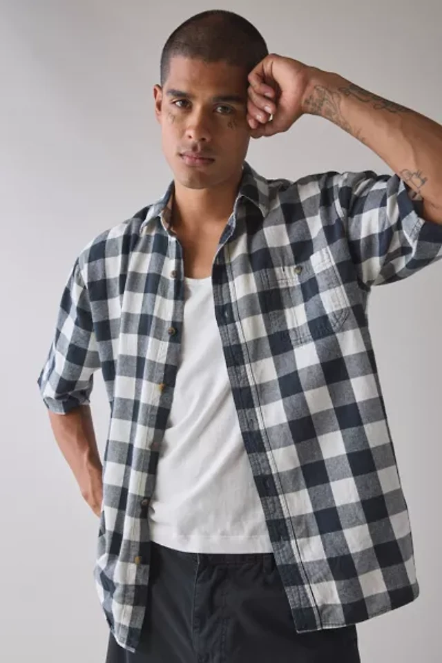ReMADE By UO Check Pattern Short Sleeve Oversized Button-Down Shirt