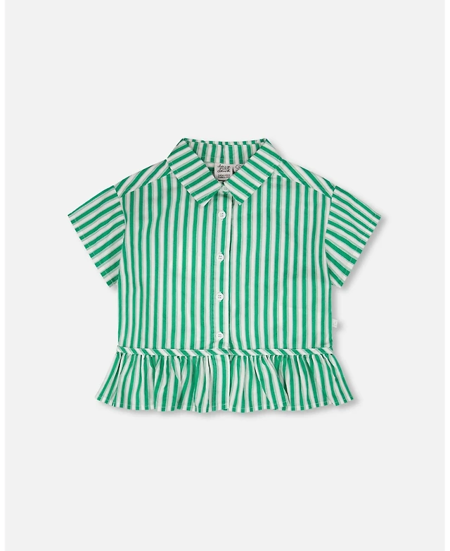 Deux par Deux Toddler Girls Short Sleeve Striped Button Down Shirt