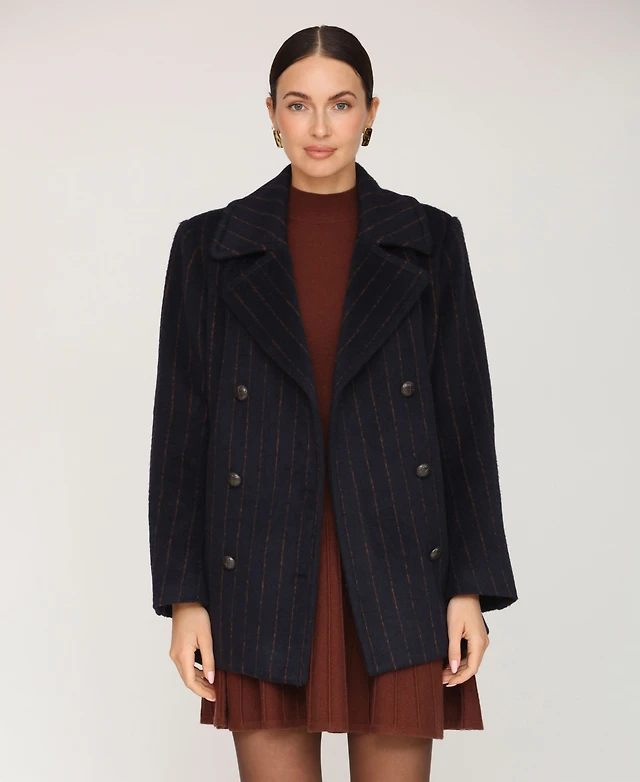 Ann Taylor Petite Striped Boucle Tweed Fitted Jacket Blue/White Combo Women's