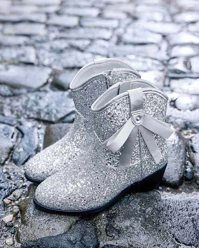Girls Glitter Bow Cowgirl Booties