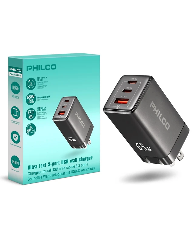 Philco GaN Usb-c Charger, 65W Power Delivery 3.0 Fast Charger, Compact and Efficient Wall Adapter for Smartphones, Laptops.