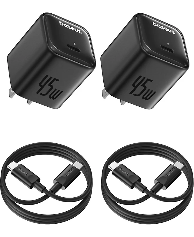 Baseus 45W Usb C Charger Block, 2 Pack Pps Fast Charger Type C with Usb-c Cable for iPhone 16/15 Series, iPad