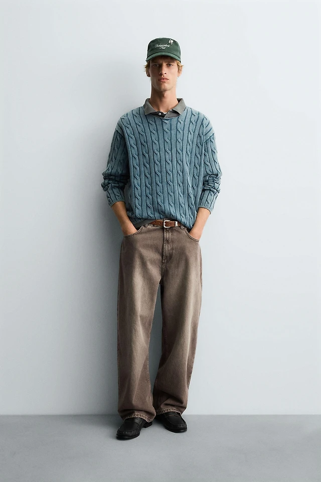 Cable-knit polo shirt