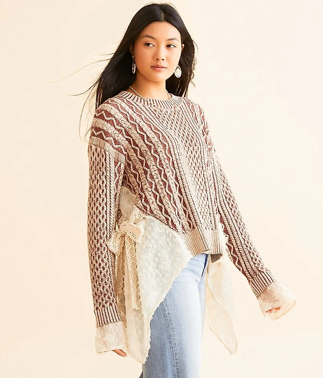 Belldini Plus Black Label Chiffon-Hem Cable Sweater