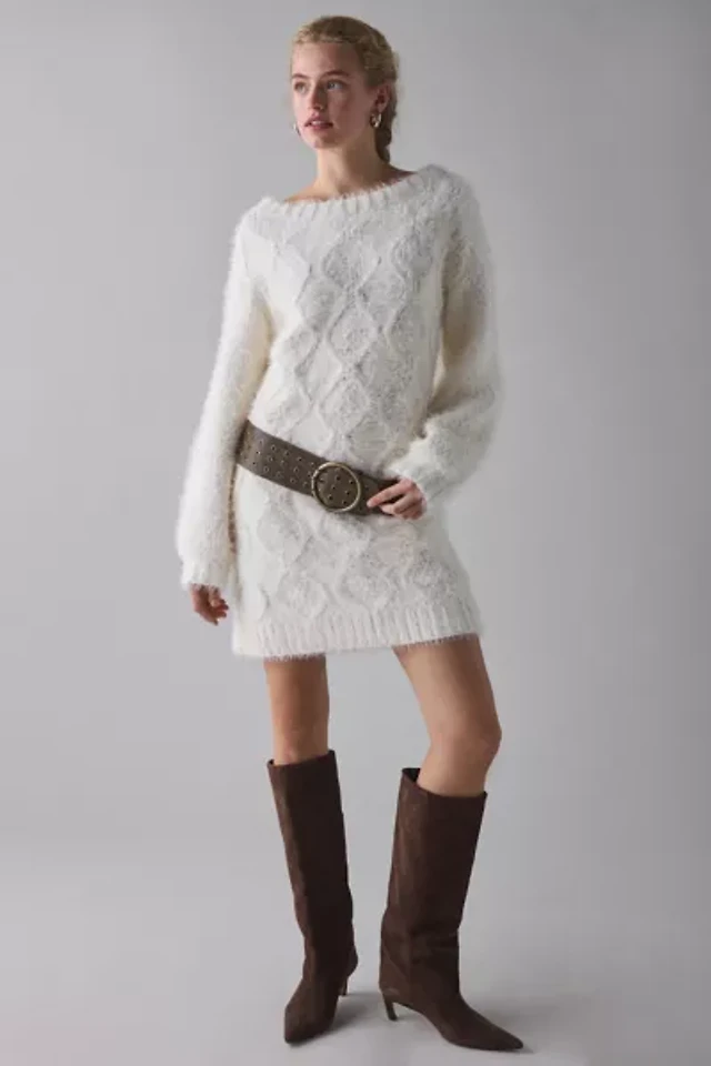 Hippie Rose Juniors' Oversized Cable-Knit Sweater
