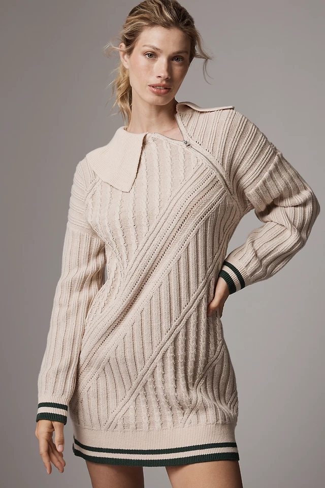 Cable & Gauge Block Rib Stitch Midweight Tunic Sweater