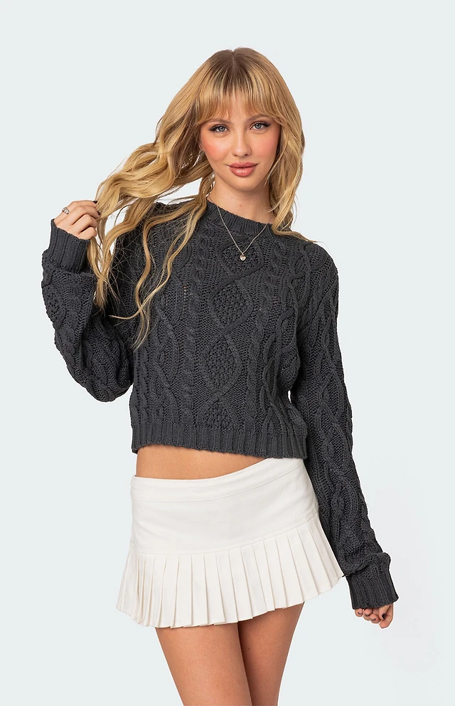 UO Kieran Cable Knit Boxy Crew Neck Sweater