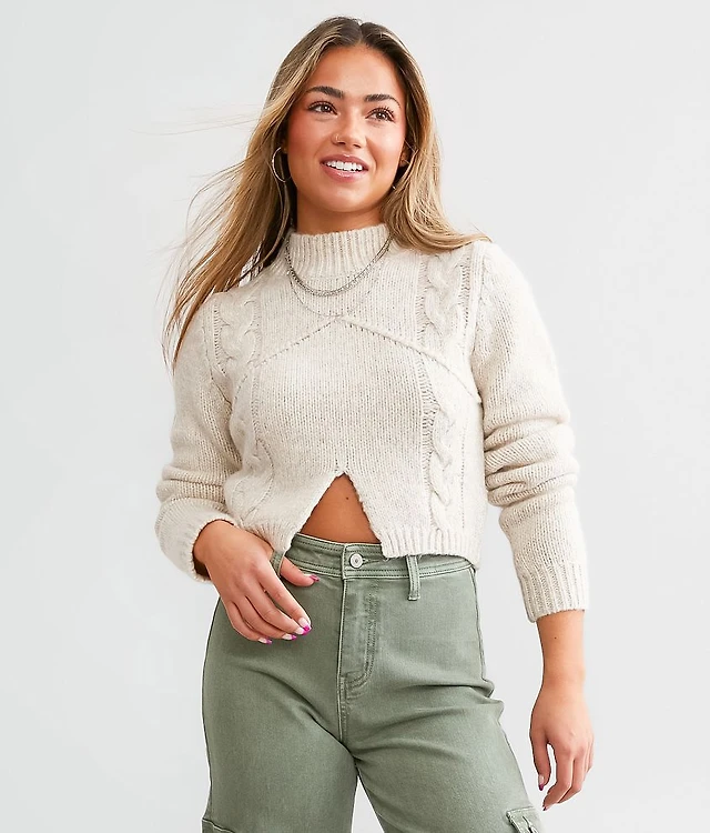 Mock Neck Cable Sweater