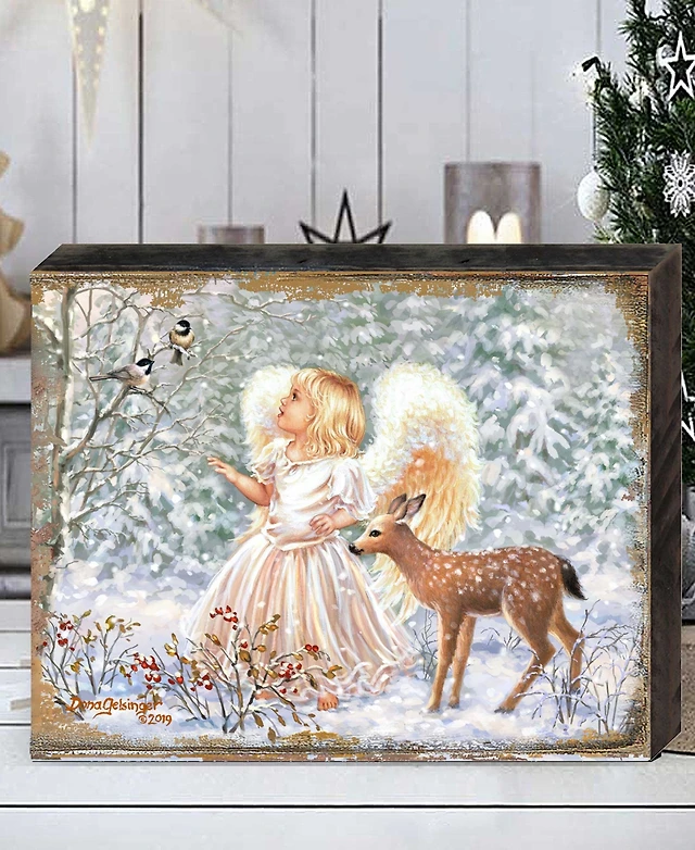 Designocracy Floral Angel Christmas Door Decor Wooden Wall Decor G. DeBrekht