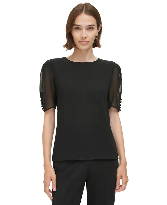 Calvin Klein Women's Long Sleeve Keyhole Blouse